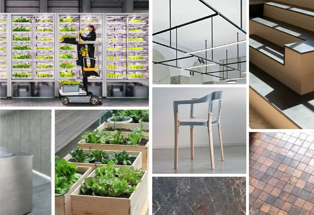 Concrete bedacht een concept voor het interieur van de 1750 m2 publieke ruimtes zoals de lobby in het atrium en restaurant, koffiebar, juicebar, sportschool, salad bar en mini supermarkt. In elk van deze ruimtes wordt een eigen identiteit gecreëerd die past en ingaat op het spanningsveld tussen het industriële karakter van de nieuwbouw en het robuuste rauwe karakter van de oudbouw.